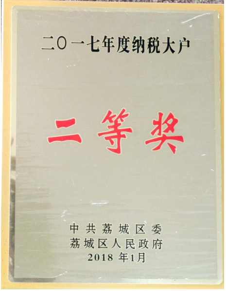 2019年01月 中共荔城區(qū)委、荔城區(qū)人民政府授予“2018年度納稅大戶二等獎”榮譽。