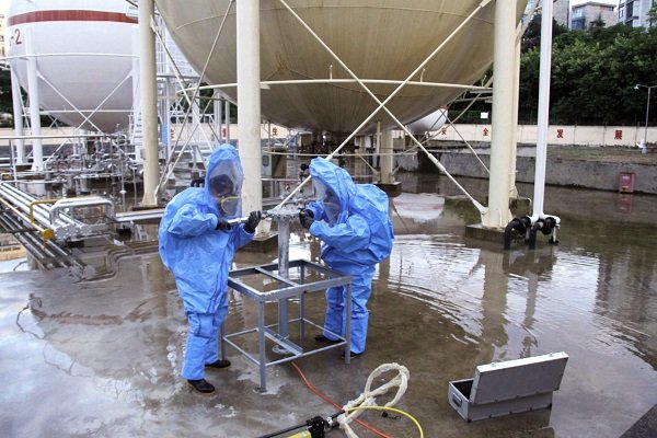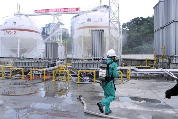 本次演練項目為: LPG1#儲罐底部出液管第一道法蘭墊片老化造成液化氣泄漏事故的應(yīng)急處置。主要流程為:模擬事故發(fā)生、報警、應(yīng)急啟動、人員疏散、安全警戒、消防噴淋驅(qū)散燃?xì)庀♂対舛?、搶險堵漏及最終解除警戒等。在演練總指揮葉春總經(jīng)理的指揮下,所有參演人員嚴(yán)肅認(rèn)真、有條不紊地推進(jìn)各個步驟,歷時一個小時后,演練圓滿完成。