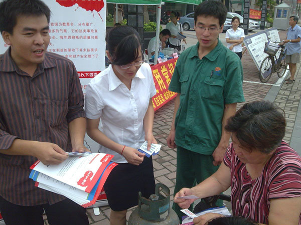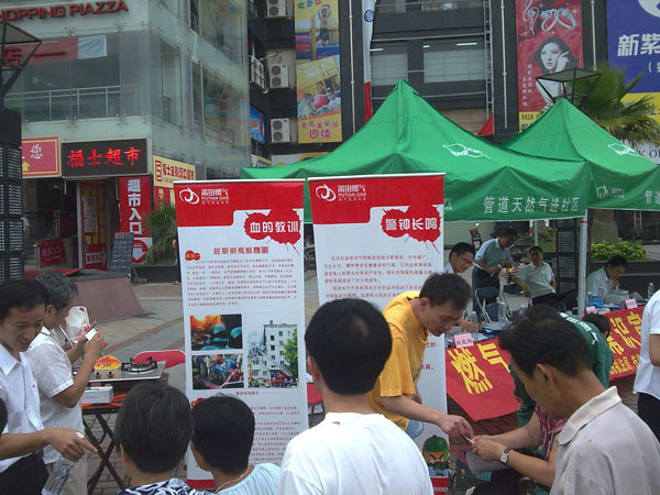 2009年6月25日,莆田燃?xì)狻鞍踩麄髟隆被顒幼哌M(jìn)社區(qū),于涵江大地香港城門口開展安全用氣宣傳、普及活動。