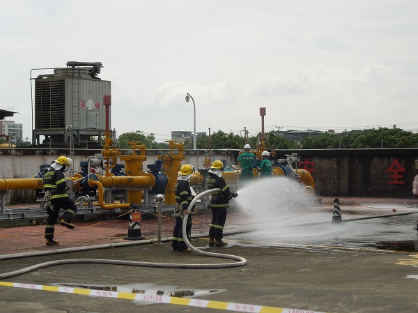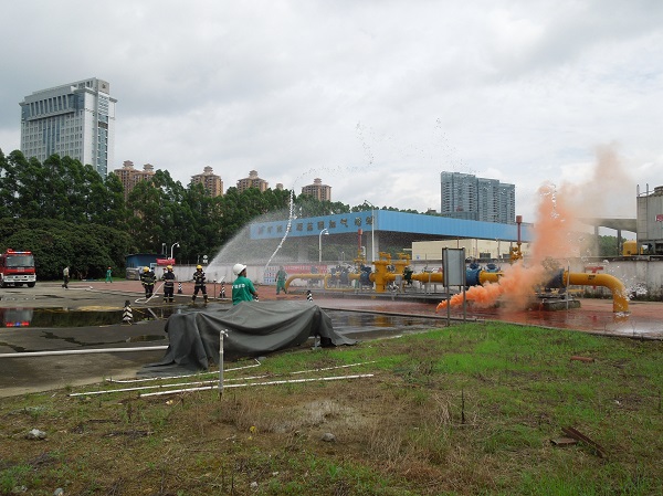 當(dāng)天上午9時許,由演練總指揮副總裁黃劍鋒正式下達(dá)演練指令,演習(xí)的內(nèi)容為荔園站遭到恐怖襲擊,調(diào)壓站設(shè)備壓力表遭到破壞,出現(xiàn)泄漏,被荔園站保安和員工發(fā)現(xiàn)并及時控制,封鎖現(xiàn)場啟動應(yīng)急機(jī)制。隨后,場站人員及消防部門通過向泄漏處噴灑消防水降低現(xiàn)場天然氣濃度,搶險組到場后對受損管線進(jìn)行切換,保證天然氣正常供給,并更換受損儀表,上午10時順利搶修完畢并恢復(fù)使用。