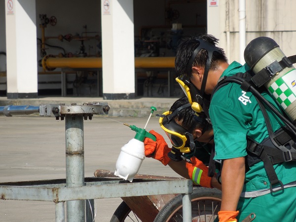 本次演練項目為:LPG1#儲罐底部出口閥被恐怖分子破壞造成液化石油氣泄漏事故的應(yīng)急處置。主要流程為:模擬事故發(fā)生、制服歹徒、報警、應(yīng)急啟動、人員疏散、安全警戒、消防噴淋驅(qū)散稀釋燃?xì)鉂舛?、搶險堵漏及最終解除警戒等。在總指揮的領(lǐng)導(dǎo)下,所有參演人員嚴(yán)肅認(rèn)真、有條不紊地進行各個演練步驟,歷時一個小時后,演練圓滿結(jié)束。