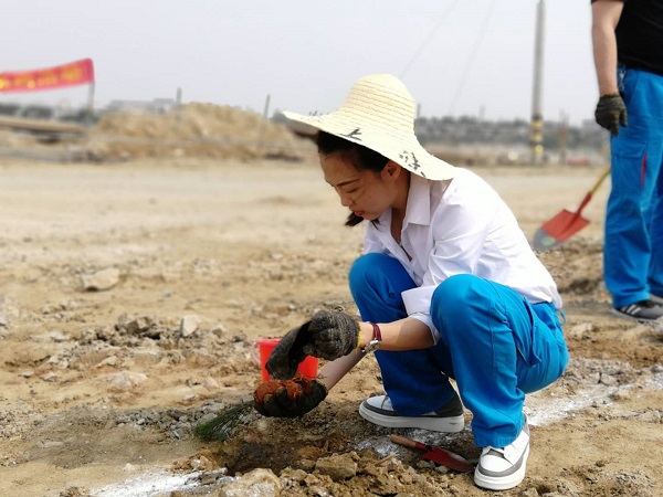 當天,烈陽當空,“曠遠藍精靈”們以“植出一片綠,再添一片景”為目標,擼起袖子,揮動鐵鍬,挖坑、扶樹、培土、澆水等,干得熱火朝天,一棵棵樹苗被栽進土壤,汗水伴著喜悅閃爍在眾人臉上。據(jù)統(tǒng)計,當天植樹達5000棵,一排排樹苗沿著石門澳產(chǎn)業(yè)園滯洪區(qū)南側(cè)連綿近2公里長,為建設(shè)現(xiàn)代化的石門澳產(chǎn)業(yè)園區(qū)再添一道綠色的屏障。