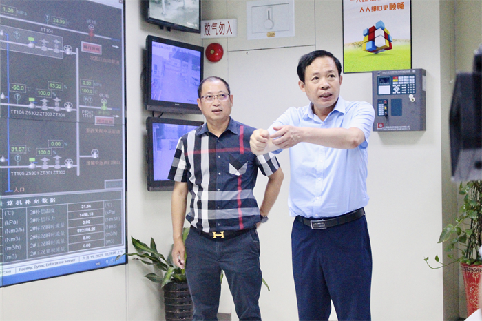 6月16日,上杭縣縣長羅劍帶領住建局、消防大隊、市場監(jiān)督局等縣局主要負責人蒞臨上杭曠遠龍翔儲配站開展燃氣安全生產(chǎn)檢查。羅縣長一行在上杭曠遠能源副總經(jīng)理李軍的陪同下,深入現(xiàn)場了解天然氣安全生產(chǎn)工作。在中控室,副總經(jīng)理李軍向縣長等一行領導匯報了上杭曠遠目前安全管理現(xiàn)狀,詳細介紹了SCADA遠程監(jiān)控系統(tǒng),通過縣城的四個遠程監(jiān)控點,實時監(jiān)控燃氣輸送壓力,保障管道輸氣的安全,安排專人對低壓管線進行巡查,入戶..
