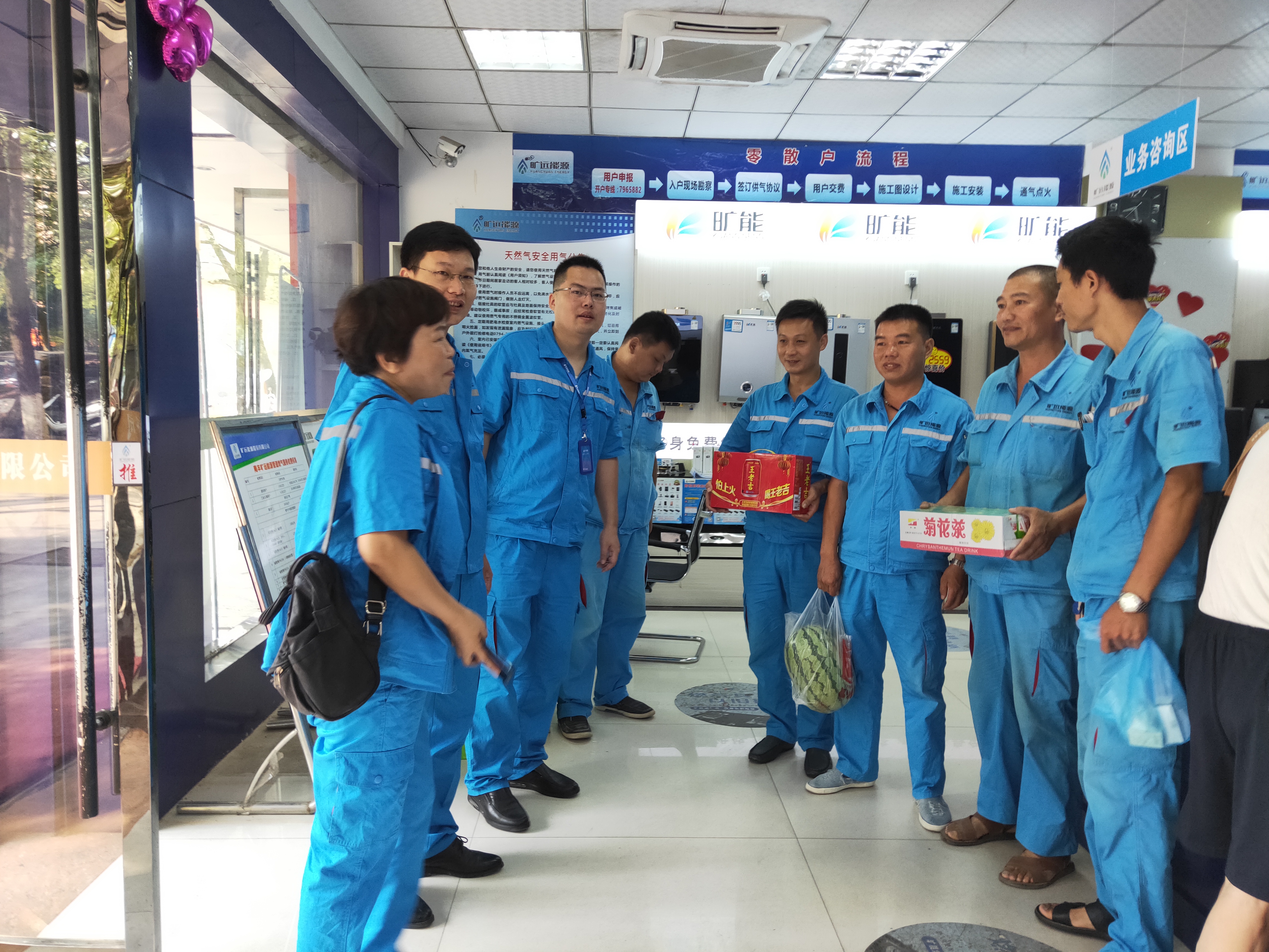 三伏天里,熱浪襲人,酷暑考驗(yàn)著堅(jiān)守在一線工作的員工。為響應(yīng)集團(tuán)對(duì)一線員工的關(guān)心和慰問(wèn),8月20日上午,南豐曠遠(yuǎn)能源有限公司總經(jīng)理柯軍、副總經(jīng)理陳黎星等一行人代表南豐公司到客服營(yíng)業(yè)廳、加氣站、工程部、市場(chǎng)部看望慰問(wèn)了一線員工。詢問(wèn)了解一線員工防暑降溫與后勤保障的工作措施,并為員工們送上了防暑降溫的藥品、清涼解渴的西瓜以及涼茶等清涼物資,叮囑員工高溫天氣下勞逸結(jié)合,注意防暑。絲絲清涼暖人心,送去的不僅..